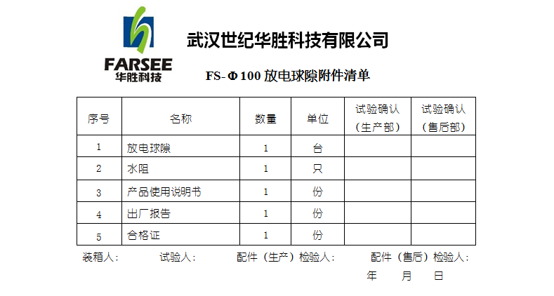 ◆FS系列放电球隙测压器技术参数