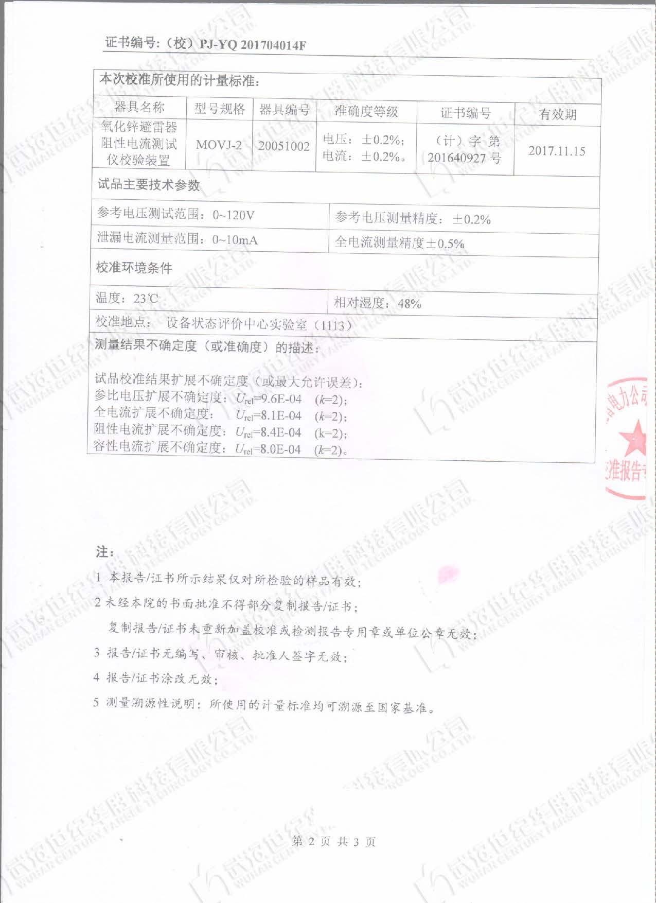 2. 设备3年免费检定或校准。
