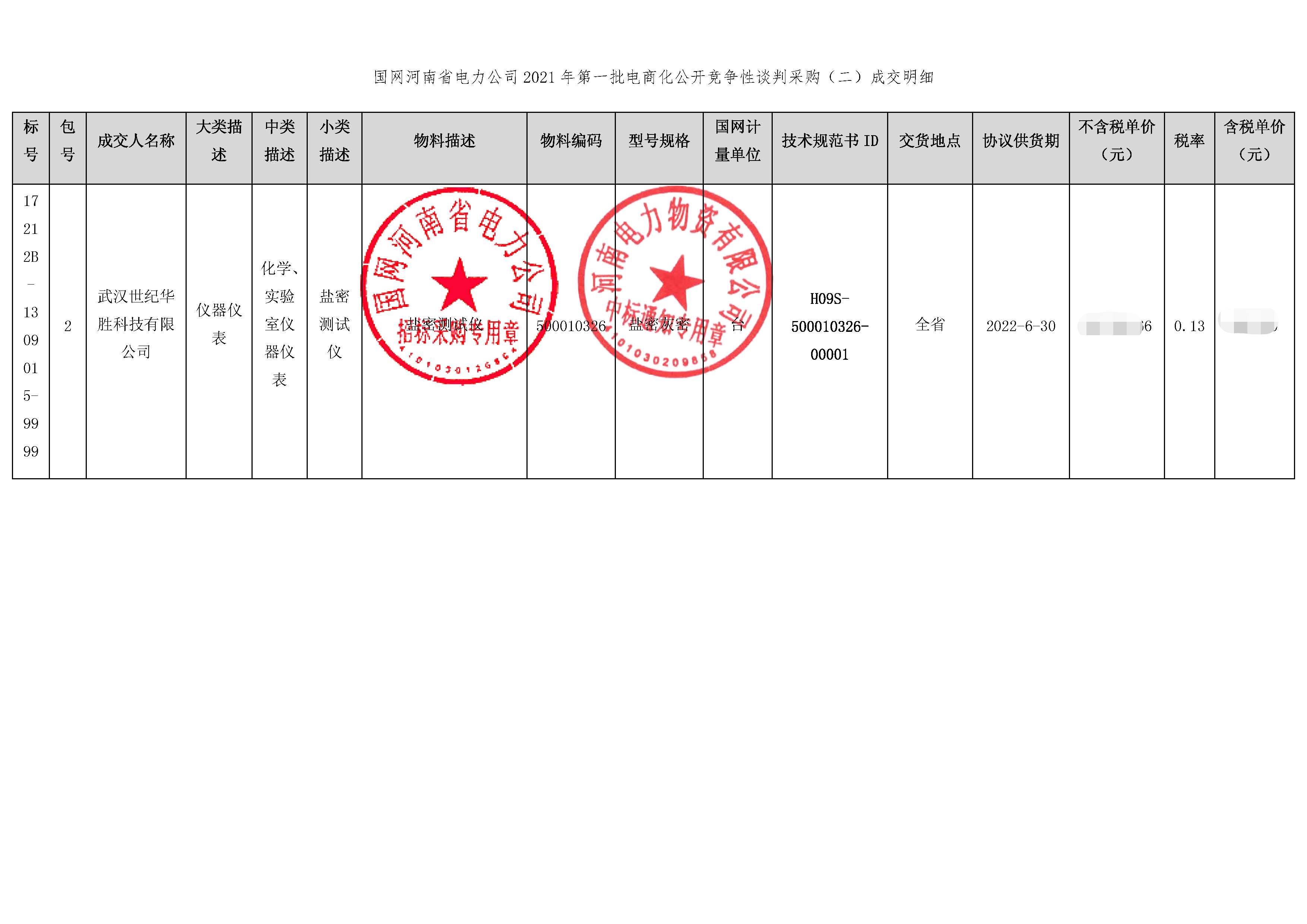 我司在国网河南省电力公司2021年第一批电商化公开竞争性谈判采购项目中标