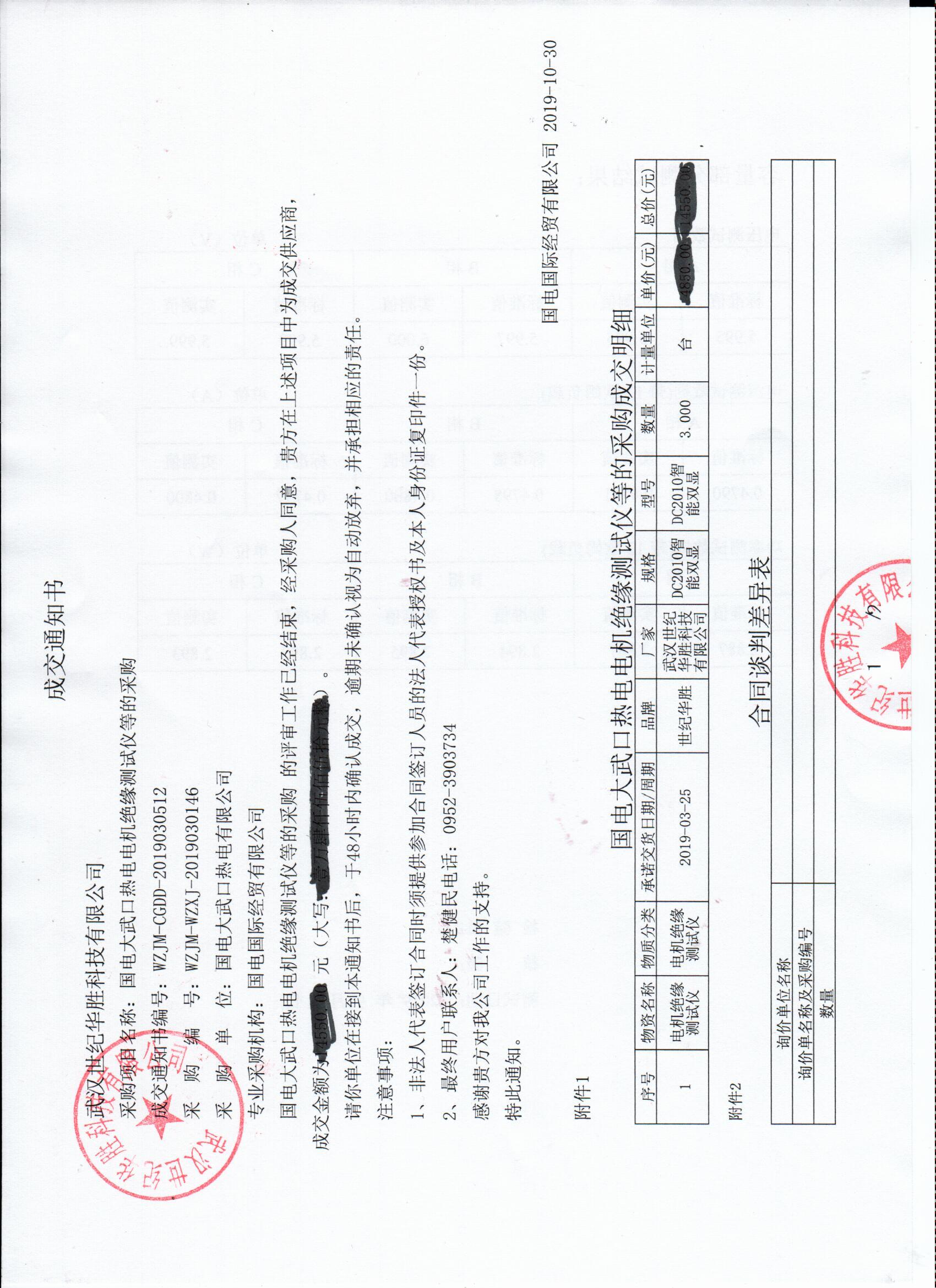 国电大武口热电电机绝缘测试仪等的采购