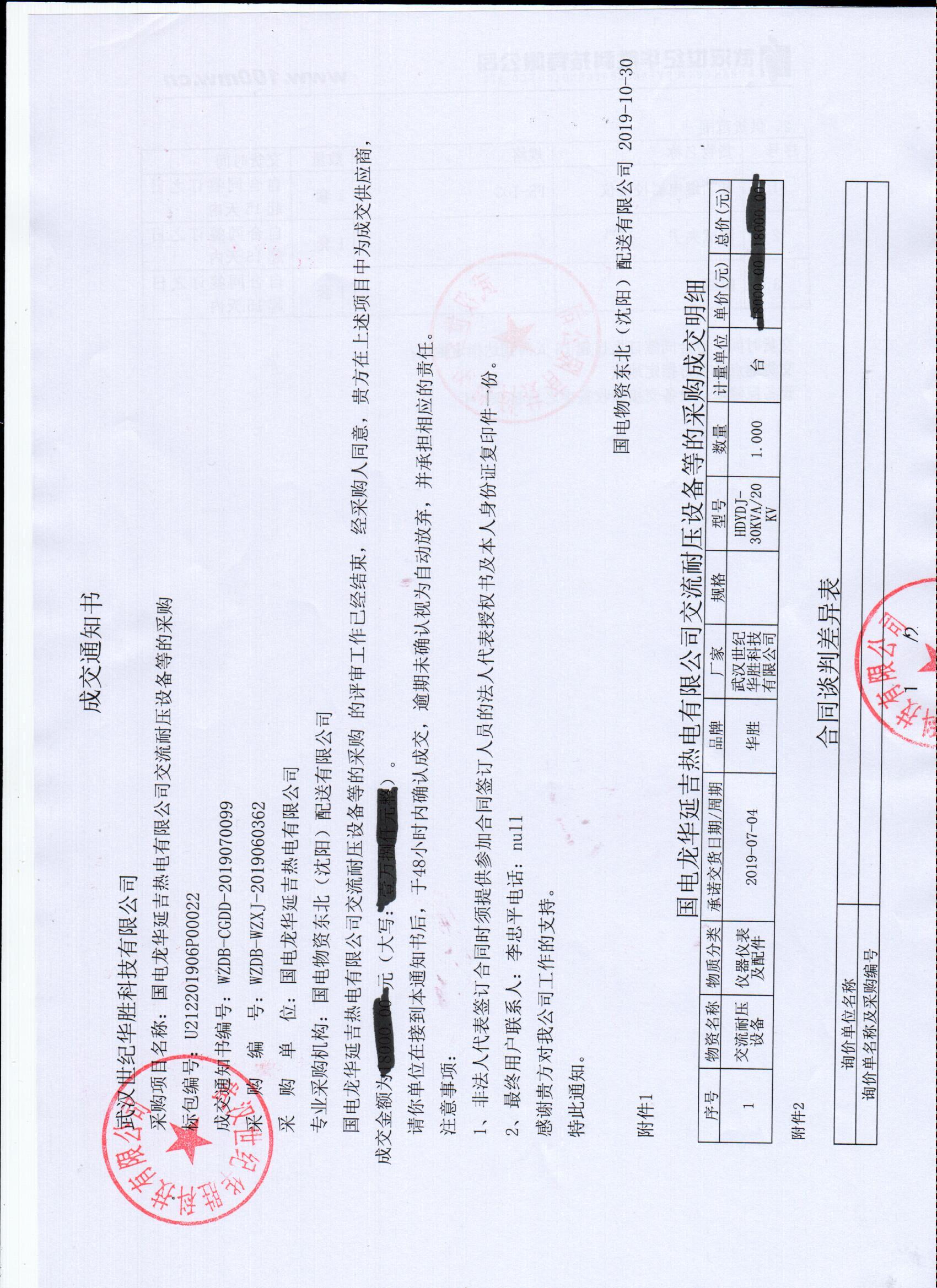 国电龙华延吉热电有限公司交流耐压设备等的采购